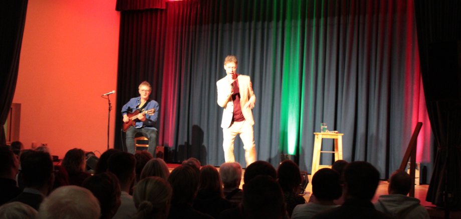 Gleich zu Beginn bemerkte Maddin Schneider, dass die Hessen mit ihrem Temperament die Brasilianer Deutschlands seien. Dann überlegte er gemeinsam mit dem Publikum, was man am Sonntag alles machen kann. Dabei fielen ihm viele verschiedene „Assotziatzionen“ ein. Er berichtete von schlimmen Erlebnissen bei der Darmspiegelung und im MRT. Vom „Schpaaschel“, der Schwarzwälder Kirschtorte, indischem Essen und der thailändischen Massage. Er erzählte von überflüssigen Sorgen und dem „Wörscht Käs“, bis zu der Weisheit seiner Oma: „Wenn es Griesbrei reschnet, muss man den Löffel raushalde“. Zwischendurch wurde das Publikum mit Liedern aufgeheitert und er verstand es hervorragend, immer wieder auf witzige Art und Weise das Publikum mit einzubeziehen.