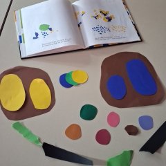 Am Donnerstag wurde die Geschichte vom „kleinen Blau und kleinen Gelb“ zum Leben erweckt. Die Kinder schnitten oder rissen buntes Papier und spielten damit Seite für Seite der Geschichte nach.